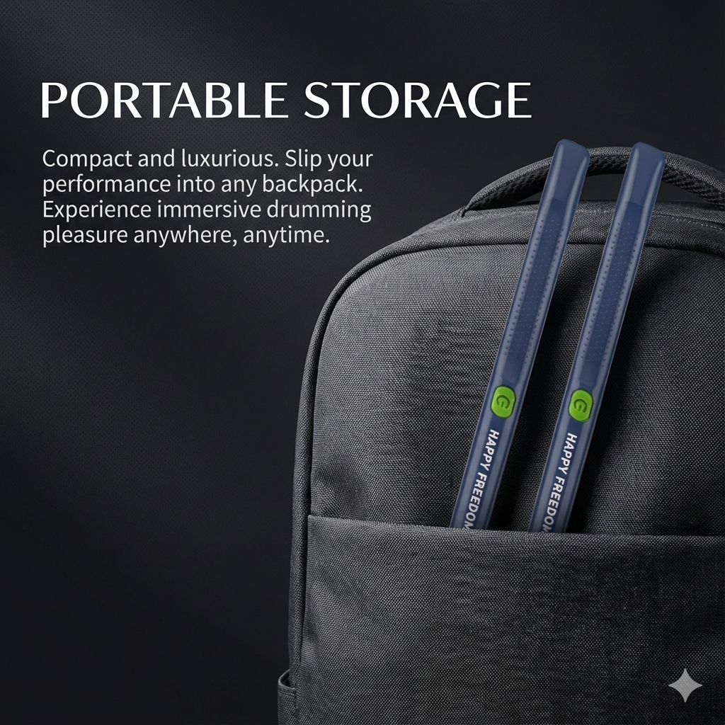 - 🎒 A Studio in Your Pocket: No bulky equipment. The compact sticks and pedals fit easily into a backpack, allowing you to practice rhythm, coordination, and technique wherever you go.